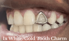 *Custom designs are up to 16 gems. 18k Gold tooth charms are not included in custom designs. A $50 Deposit is required for your first session.